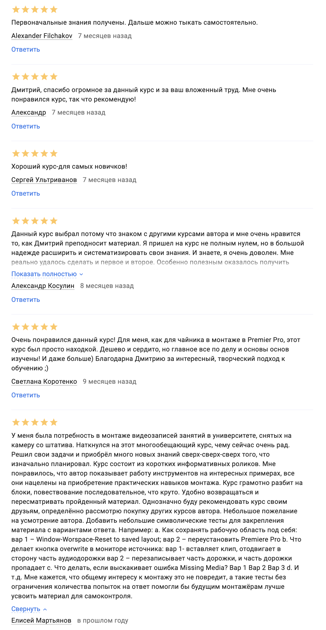 Никаких предварительных знаний или опыта работы с PremierePro не требуется